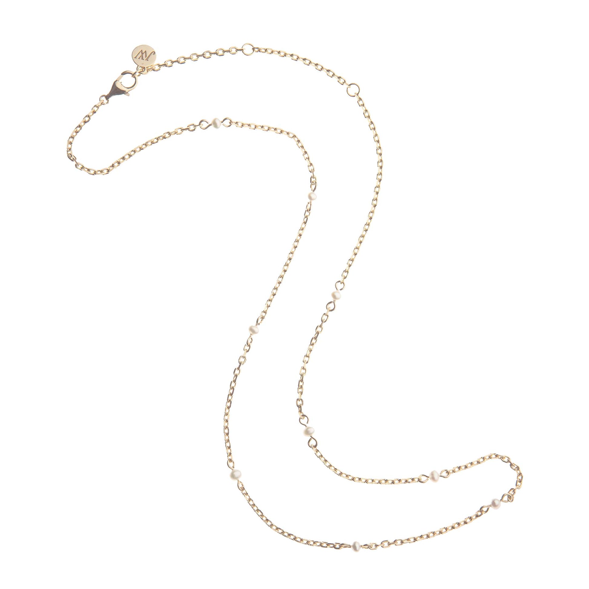 We love adding layers to our neckmess - and this pearl station necklace is the perfect pop of gold and white to add on top. This delicate chain is accented with 8 natural fresh water pearls. Even better? It is adjustable at three lengths and can hold your Jane Win coin.