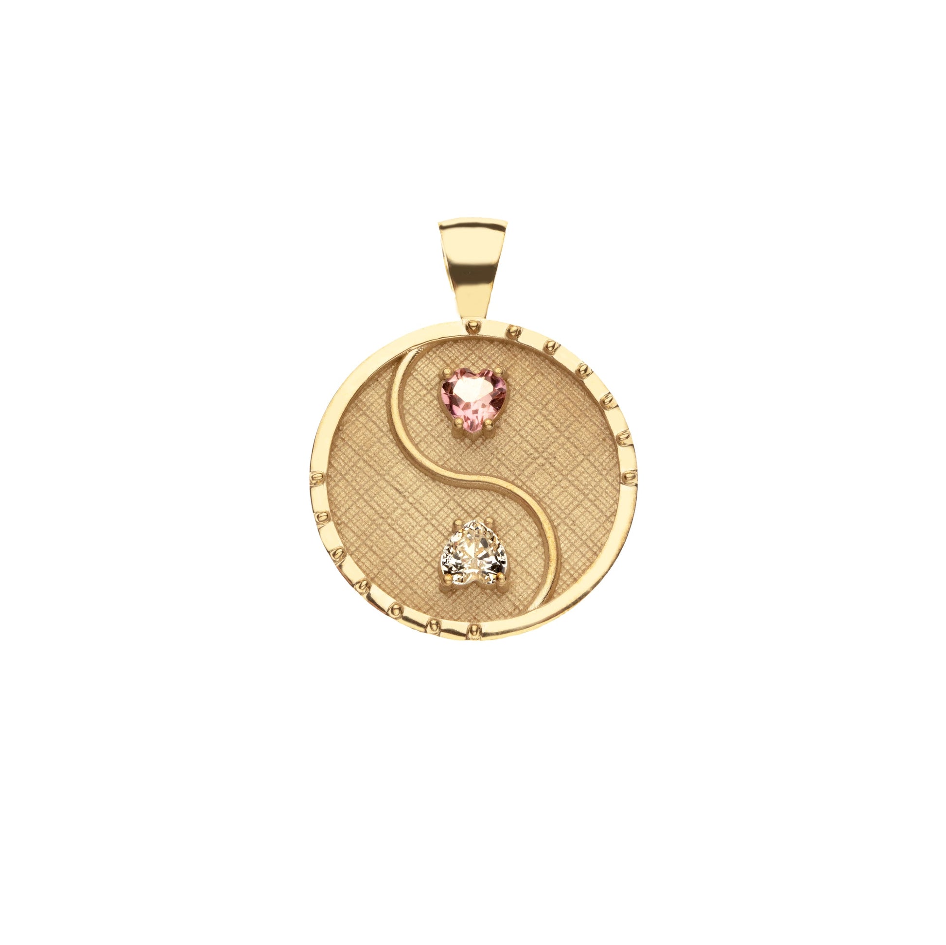 A small, fine edition of the Balance JW Original Coin balancing the yin and yang with a White Topaz and Pink Tourmaline heart stone.