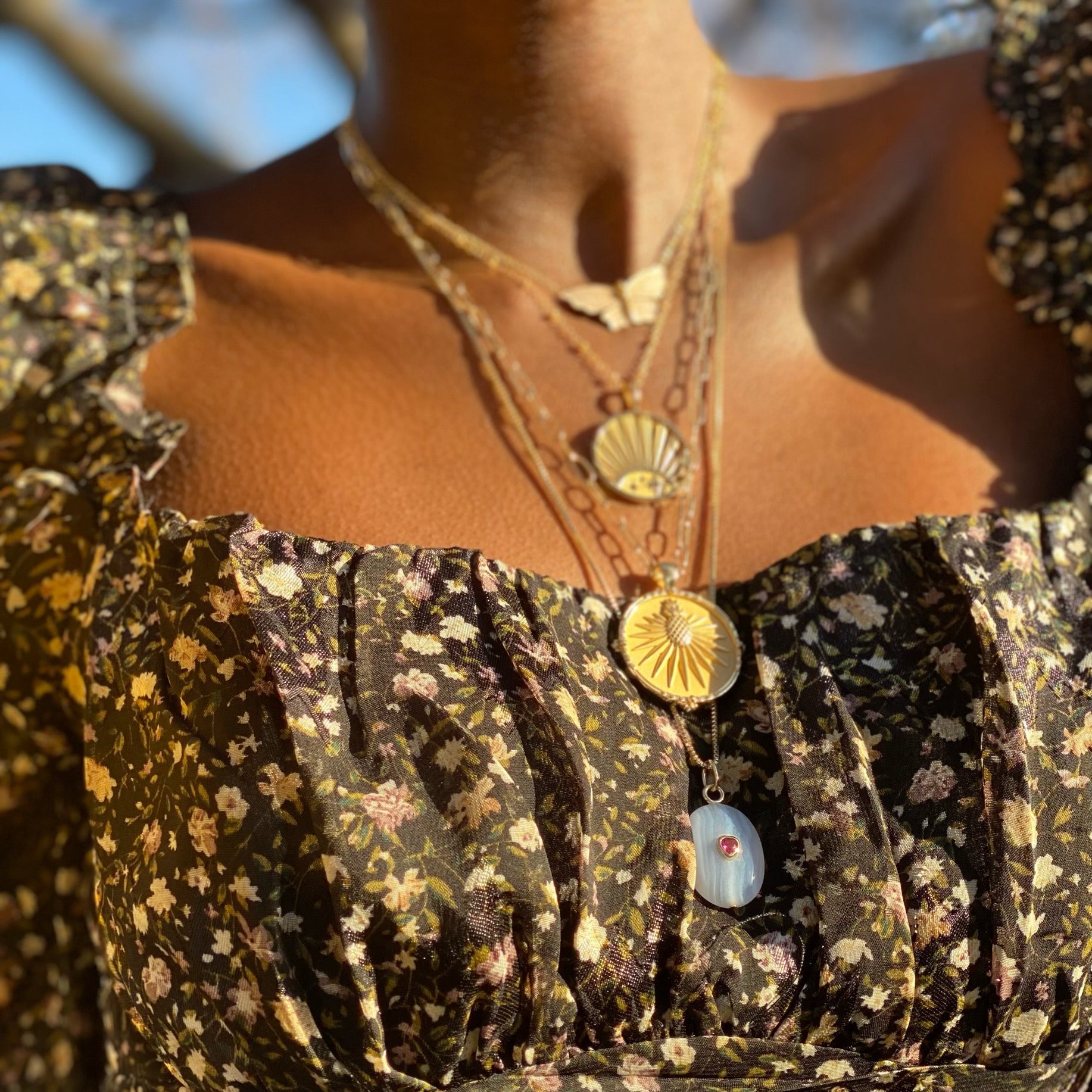 • Coin pendant made of sterling silver dipped in 14k gold, measuring 1.2" in diameter.