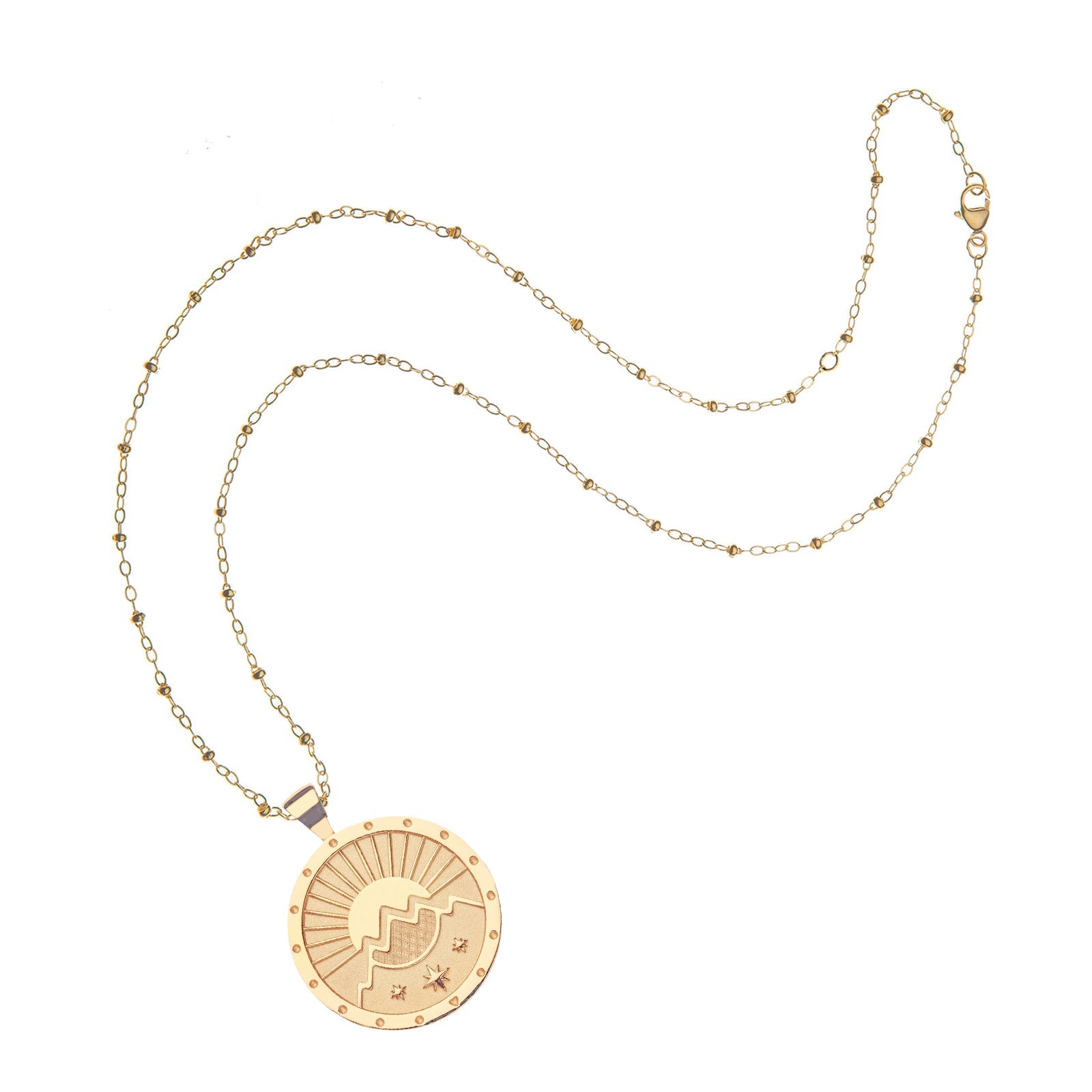 • Coin pendant made of sterling silver dipped in 14k gold, measuring 1.2" in diameter.