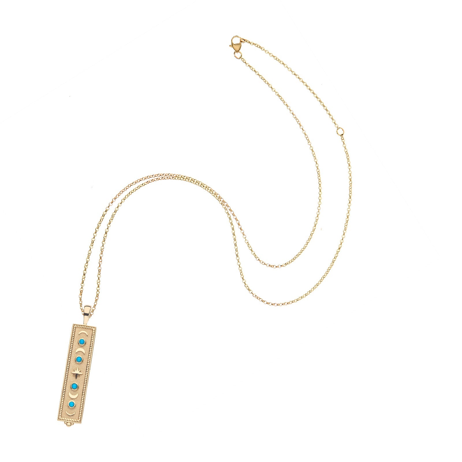 Pendant made of sterling silver heavily plated in 14k gold, and accented with cabochon Turquoise stones.