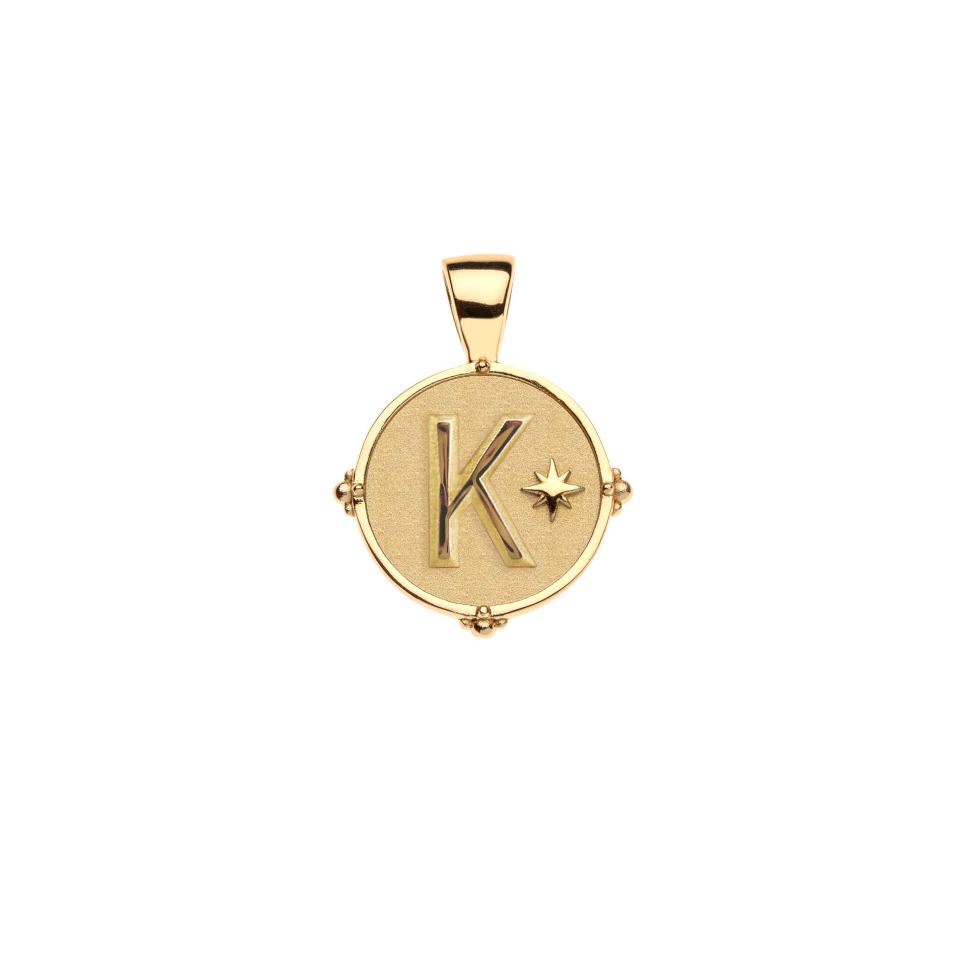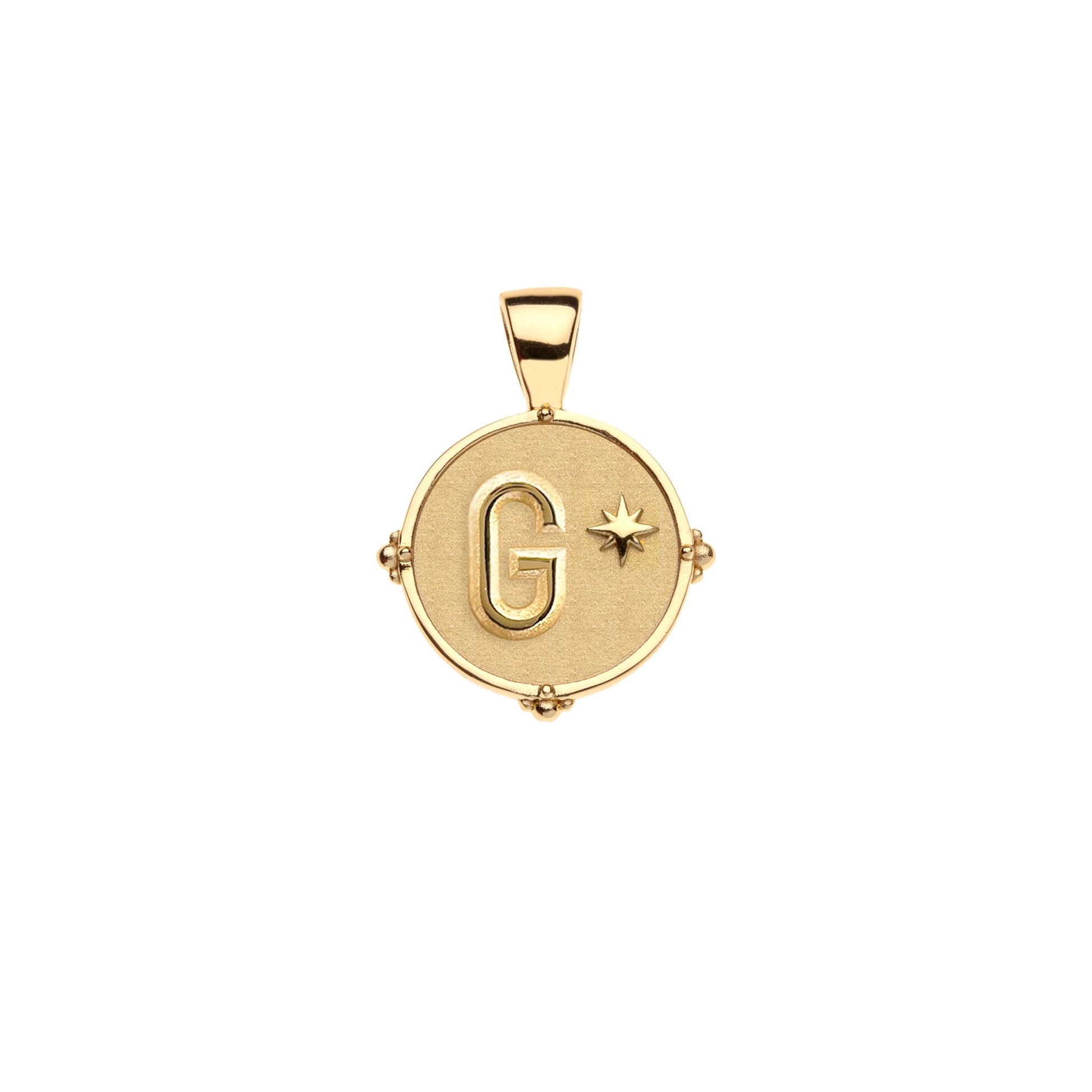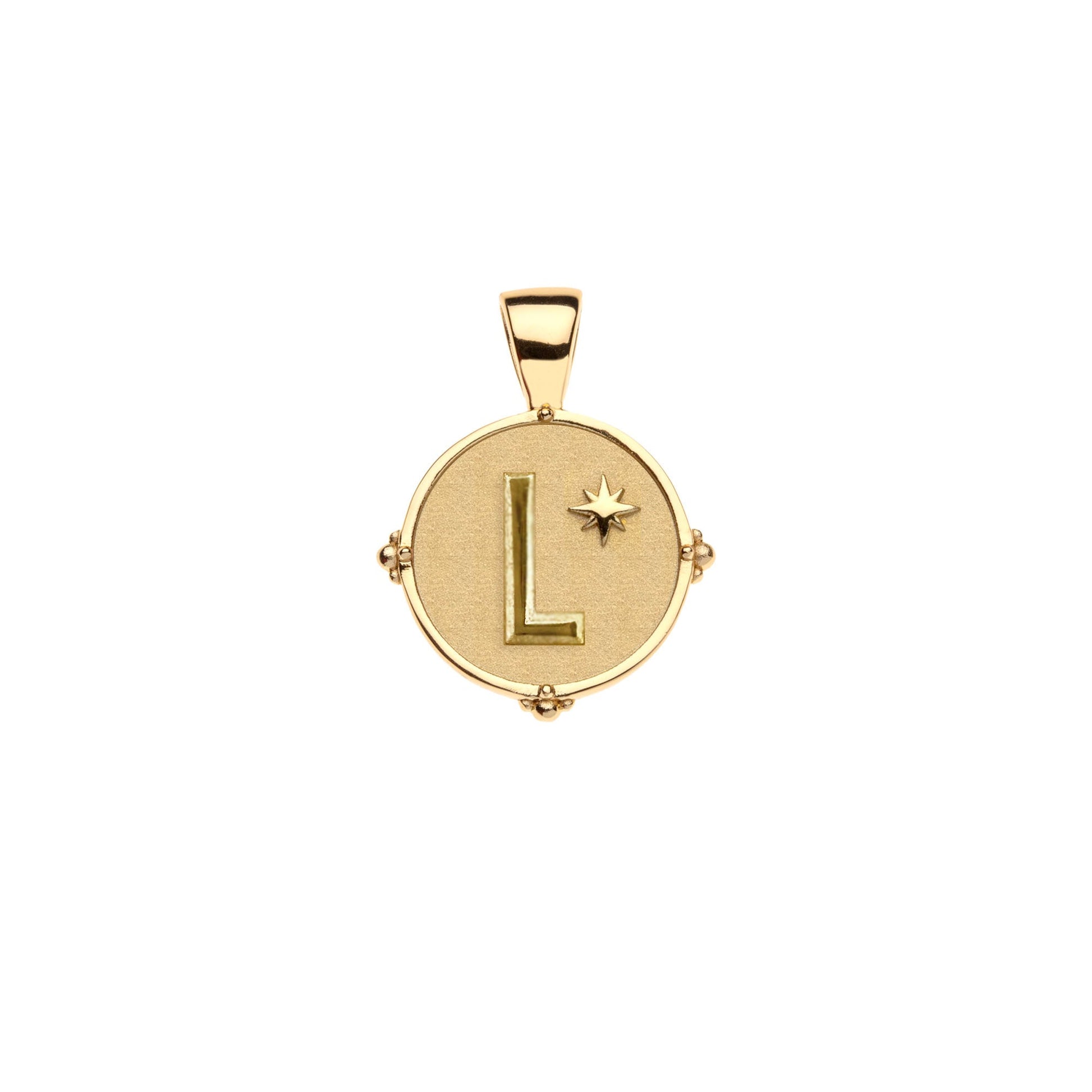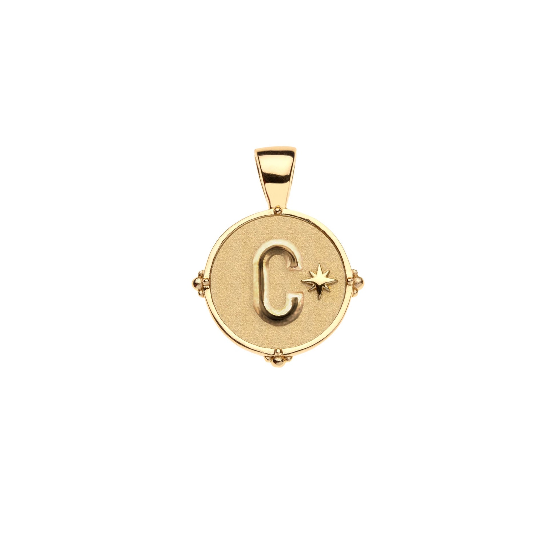 Your letter. Your children's letters. Your partner's letters. WE LOVE THEM ALL. 14k gold plated sterling silver pendant, 0.75" in diameter. Double sided with your letter and star on one side and our moon and star logo on the back. Wear with your own chain or on our delicate 18-20" adjustable chain. Additional chains available for purchase.