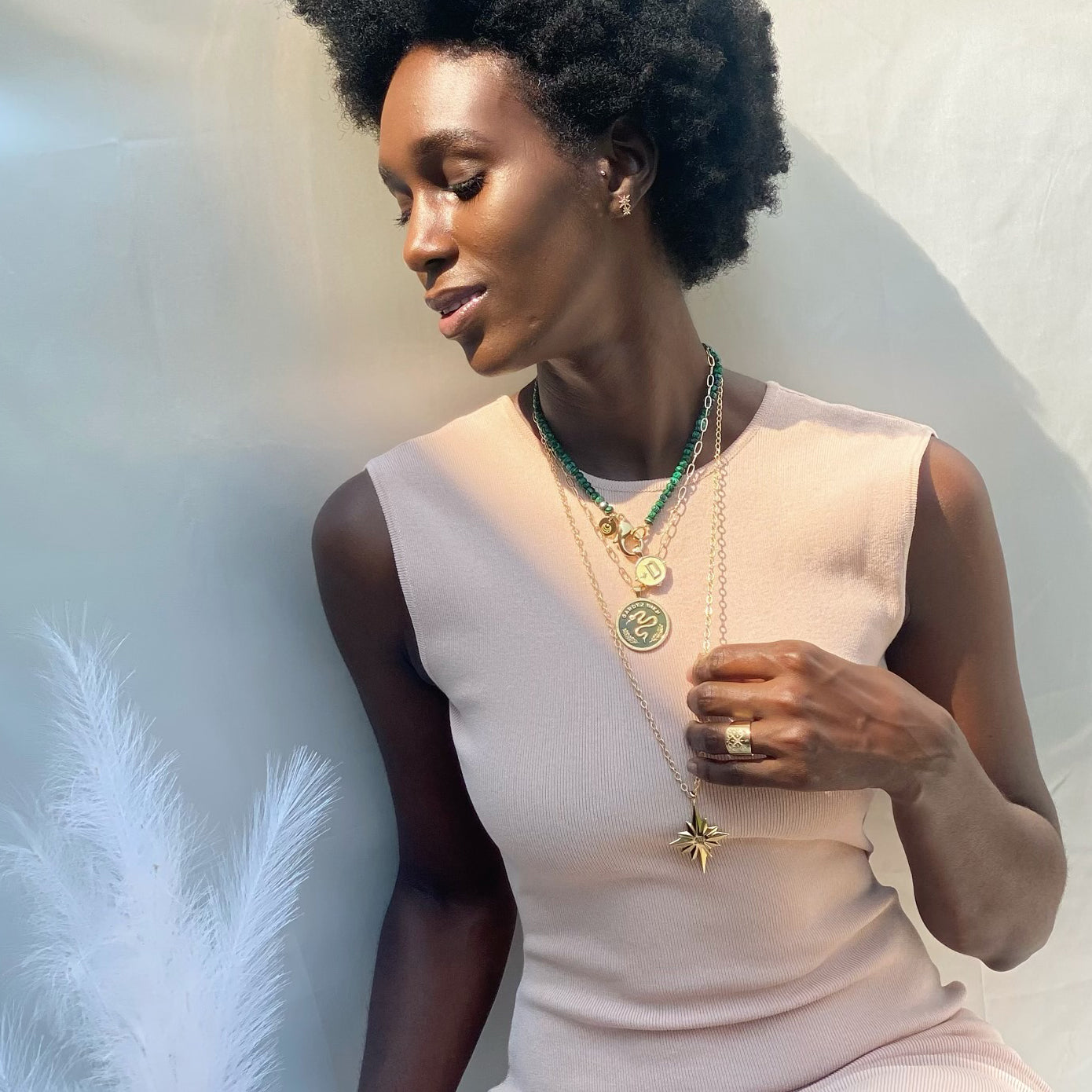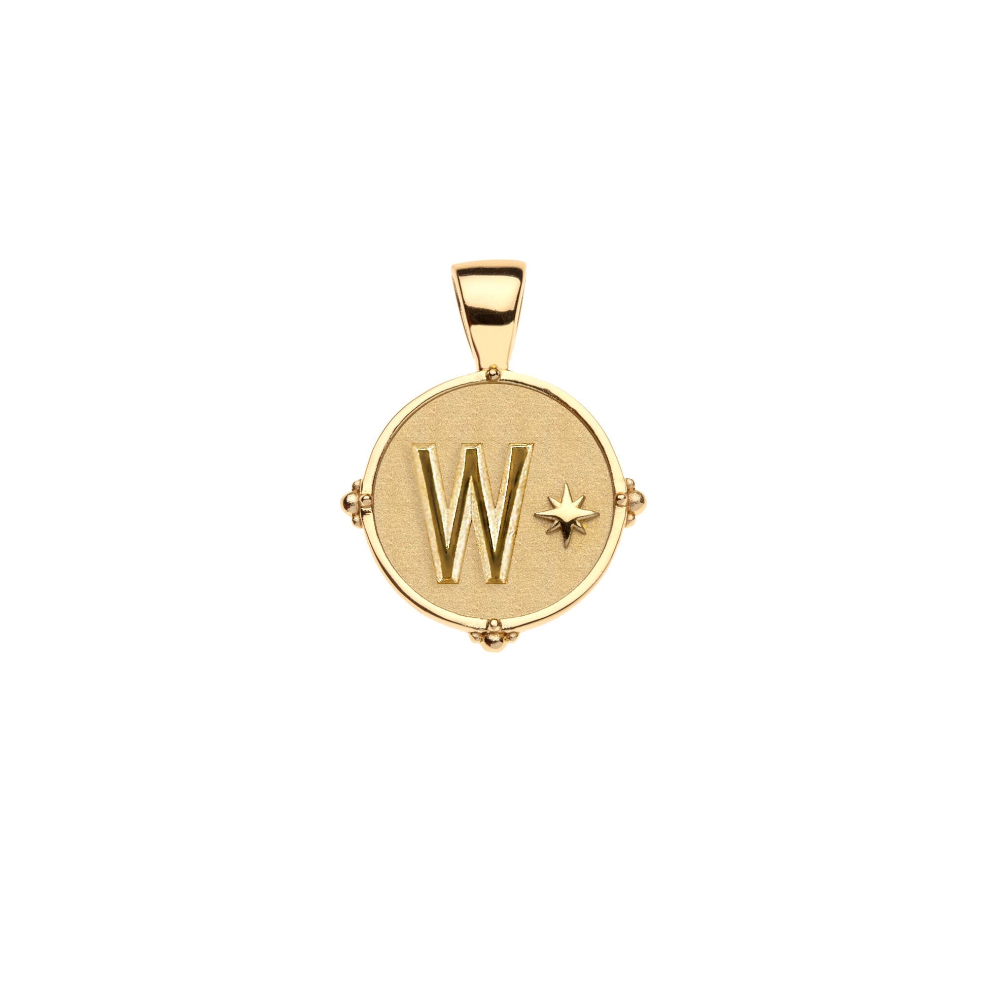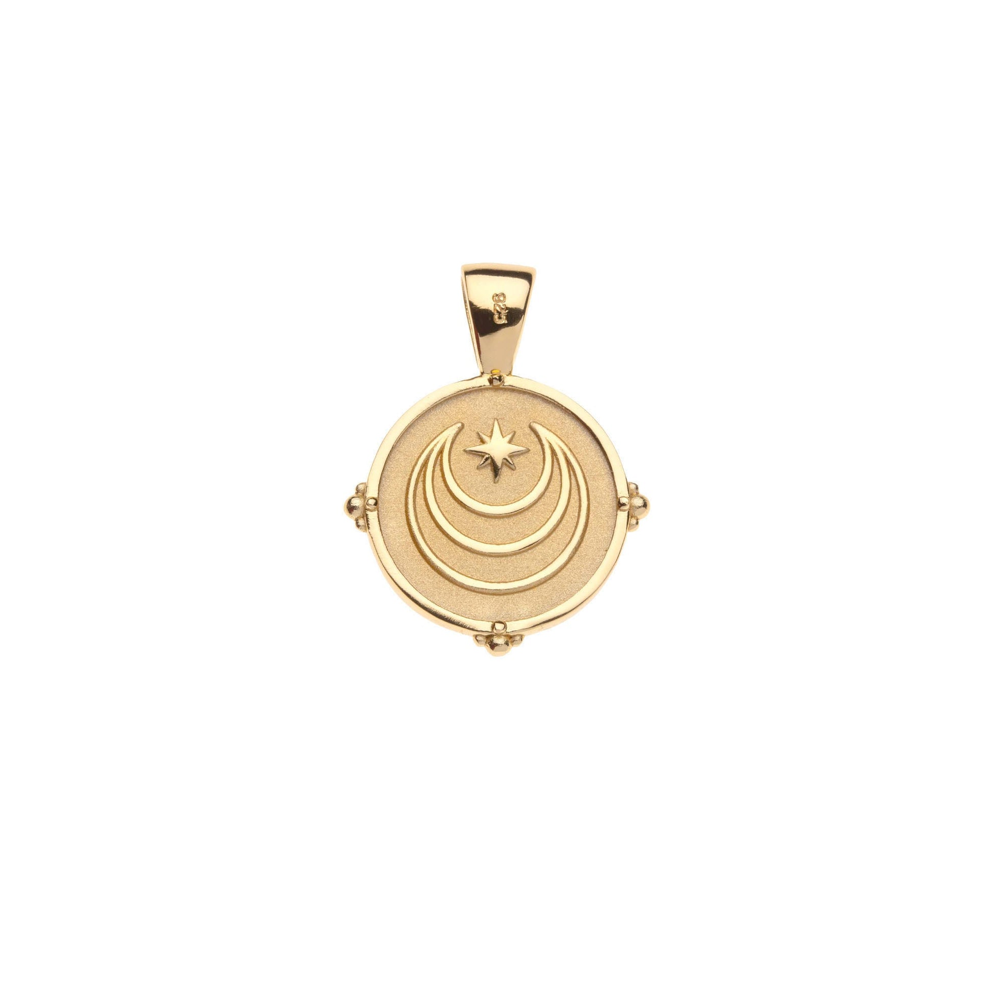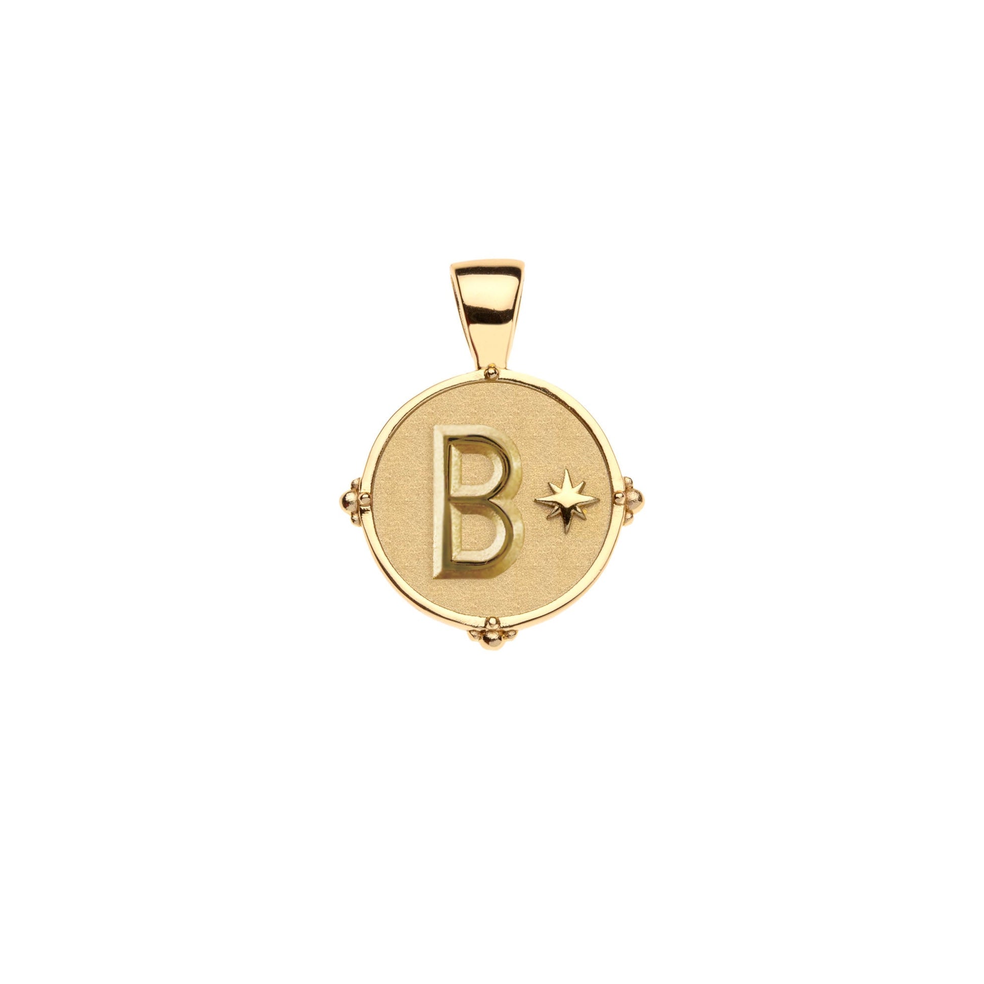 Your letter. Your children's letters. Your partner's letters. WE LOVE THEM ALL. 14k gold plated sterling silver pendant, 0.75" in diameter. Double sided with your letter and star on one side and our moon and star logo on the back. Wear with your own chain or on our delicate 18-20" adjustable chain. Additional chains available for purchase.