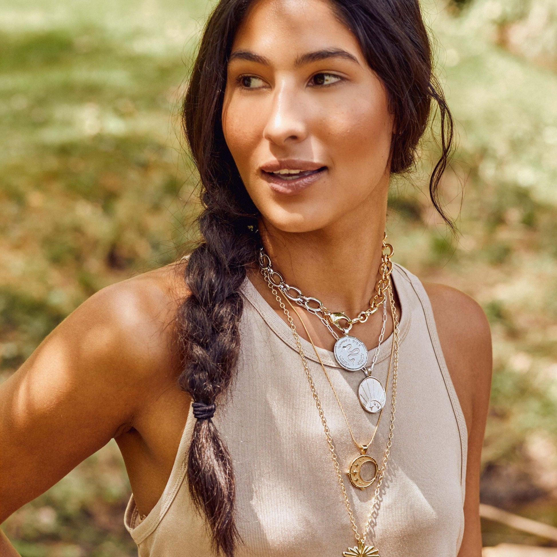 Coin pendant made of sterling silver dipped in rhodium, measuring 1.2" in diameter.