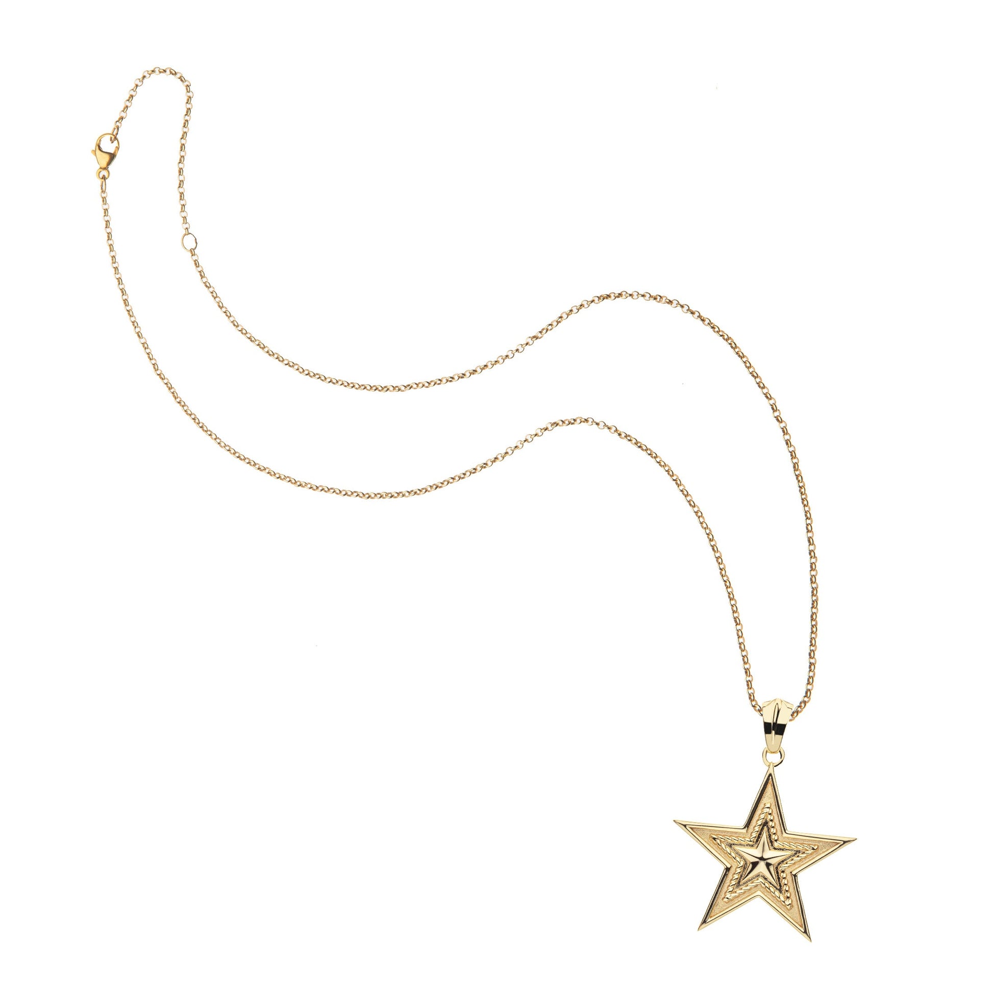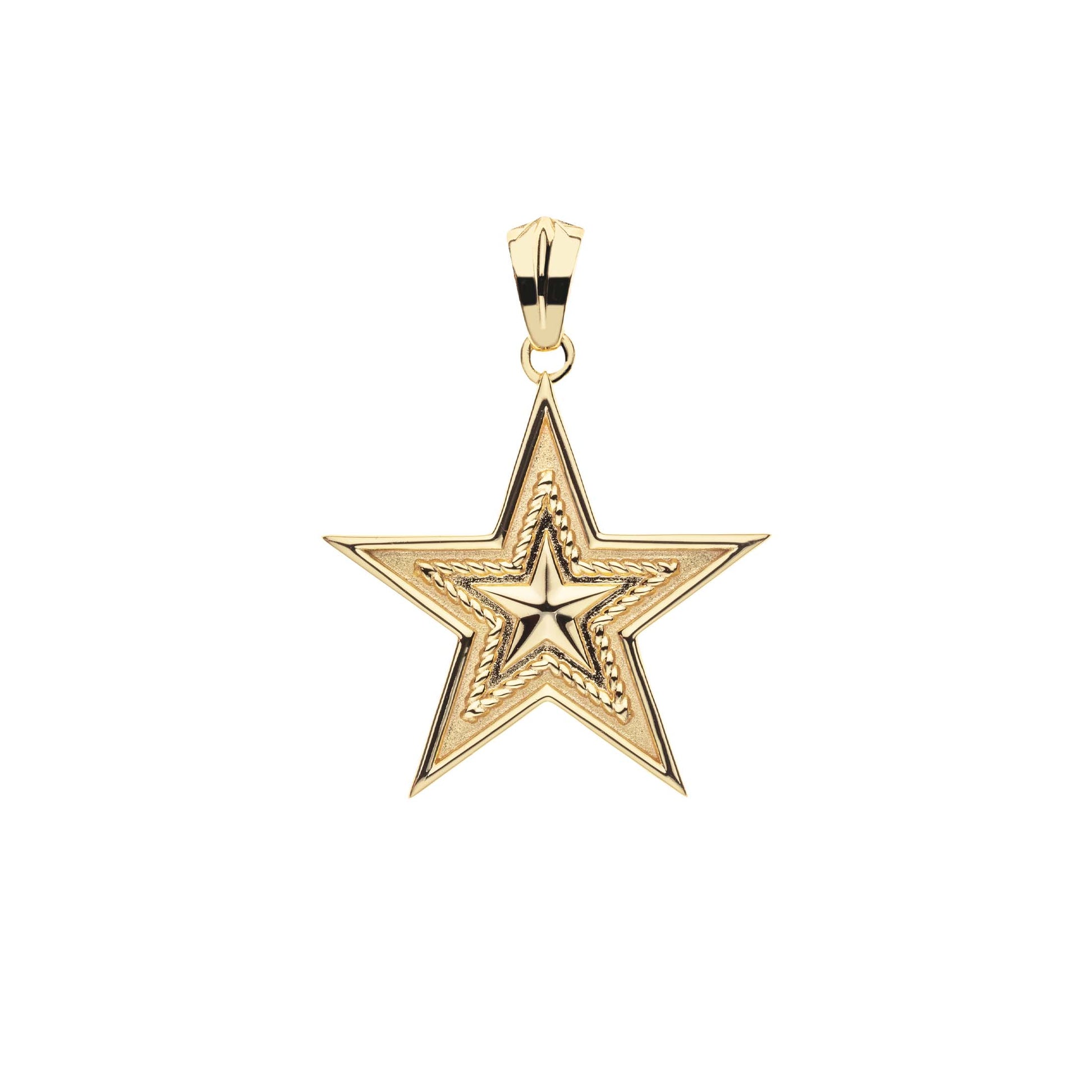 - Star pendant made of sterling silver dipped in 14k gold, measuring 1.1" across.